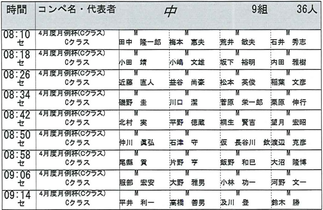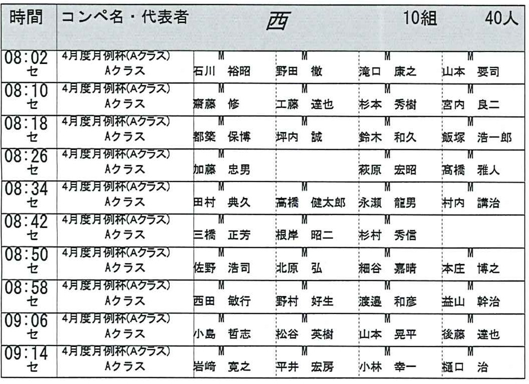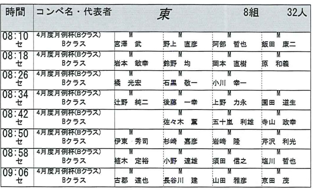 4月度月例杯スタート表です。クリックすると拡大できます。
