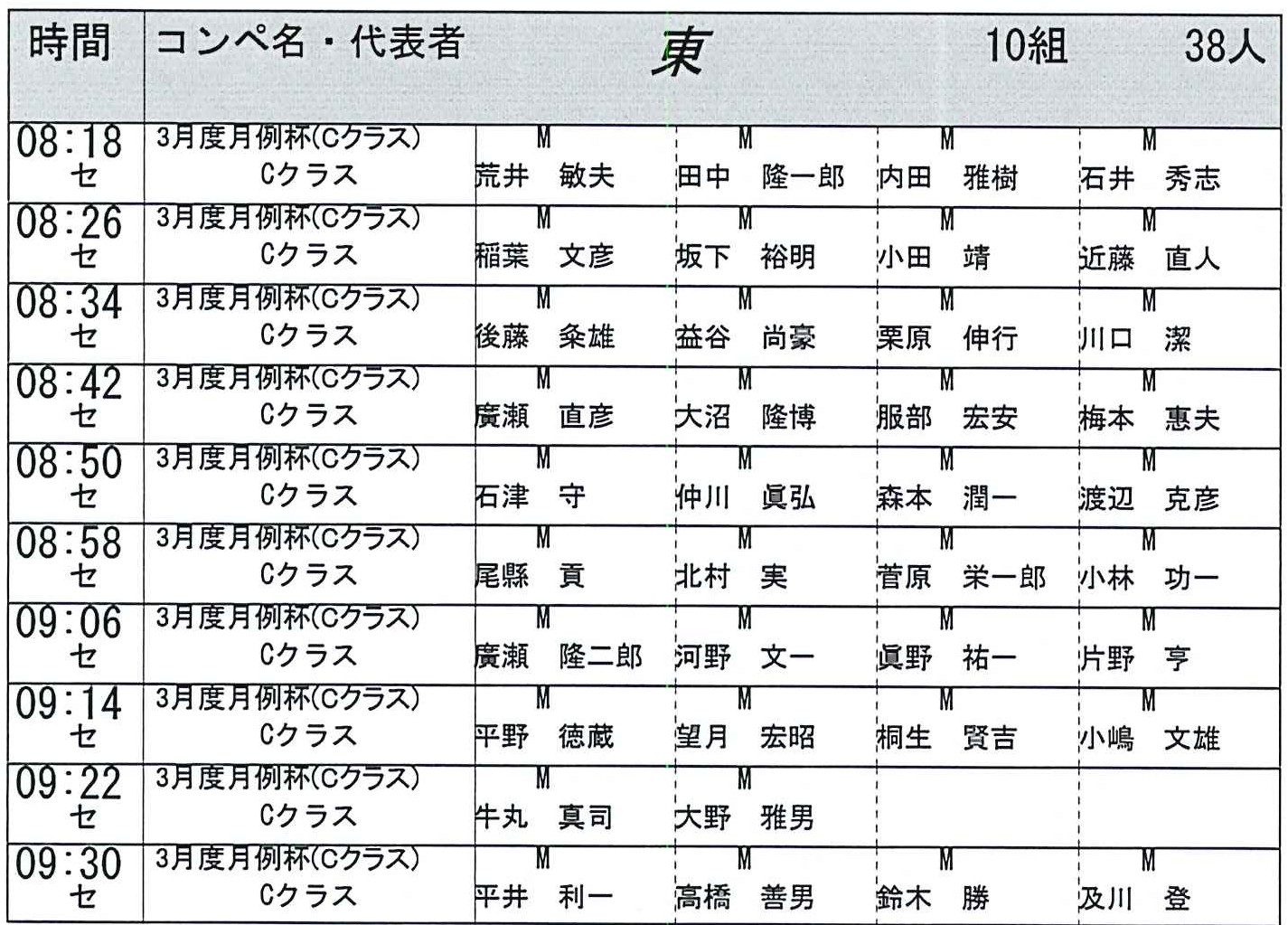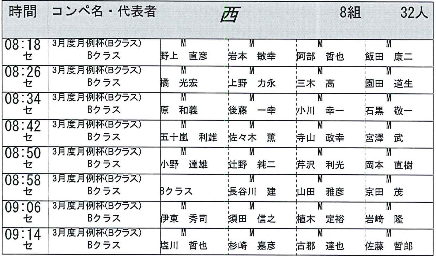 3月30日月例杯のスタート表です。