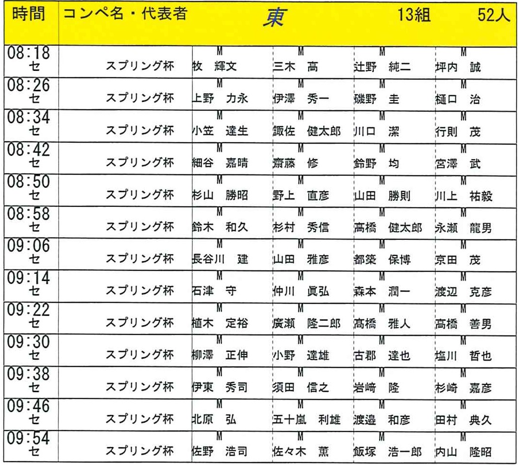 3月8日開催「スプリング杯」のスタート表です。