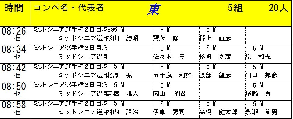 ミッドシニア選手権 組み合わせ11/9現在