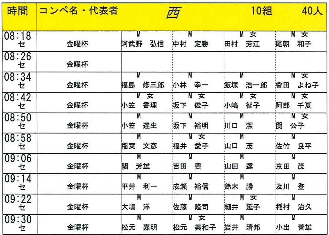 12月19日㈮開催の金曜杯のスタート表です。クリックすると拡大できます。まだご予約されていない方はご来場時か、お電話でご予約をお願いいたします。