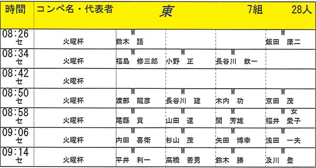 2月度火曜杯スタート表です。クリックすると拡大できます。2026年1月より火曜杯に名誉会員も参加できます。正会員ハンデ+名誉会員新ペリアハンデで集計いたします。